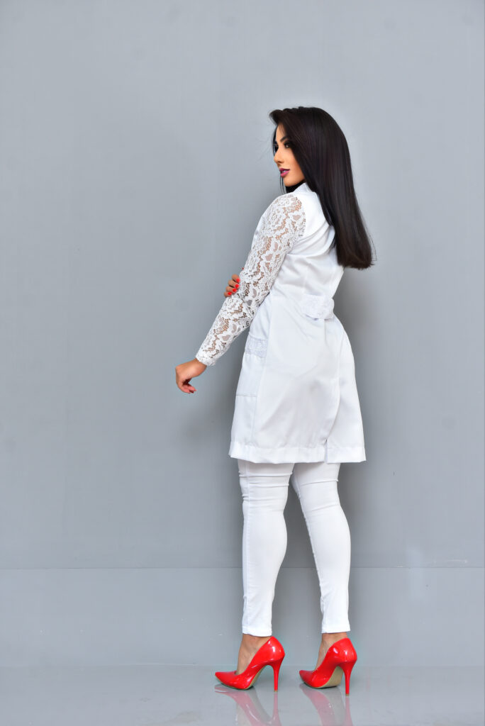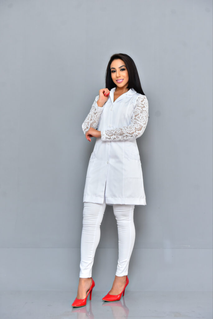 Jaleco Tradicional manga de renda no gabardine
